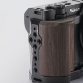 A built-in ergonomic wooden handle improves handheld operation, addressing the camera’s compact form factor by providing a more secure and comfortable grip.