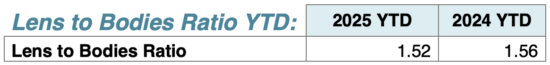 - The lens to body sales ratio has dropped to 1.52 compared to 1.56 a year ago.