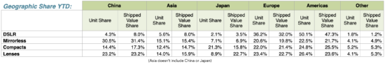 - DSLR’s are down 29% in units and 34% in shipped value,