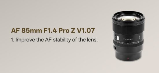 Viltrox AF 85mm f/1.4 Pro lens for Nikon Z-mount firmware update version 1.07 released with improved AF functionality.