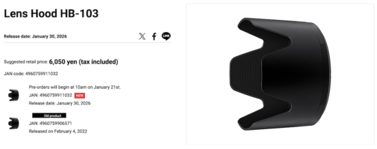 The official Nikon Japan online store (Nikon Direct) is listing a new HB-103 lens hood to be released on January 30th: