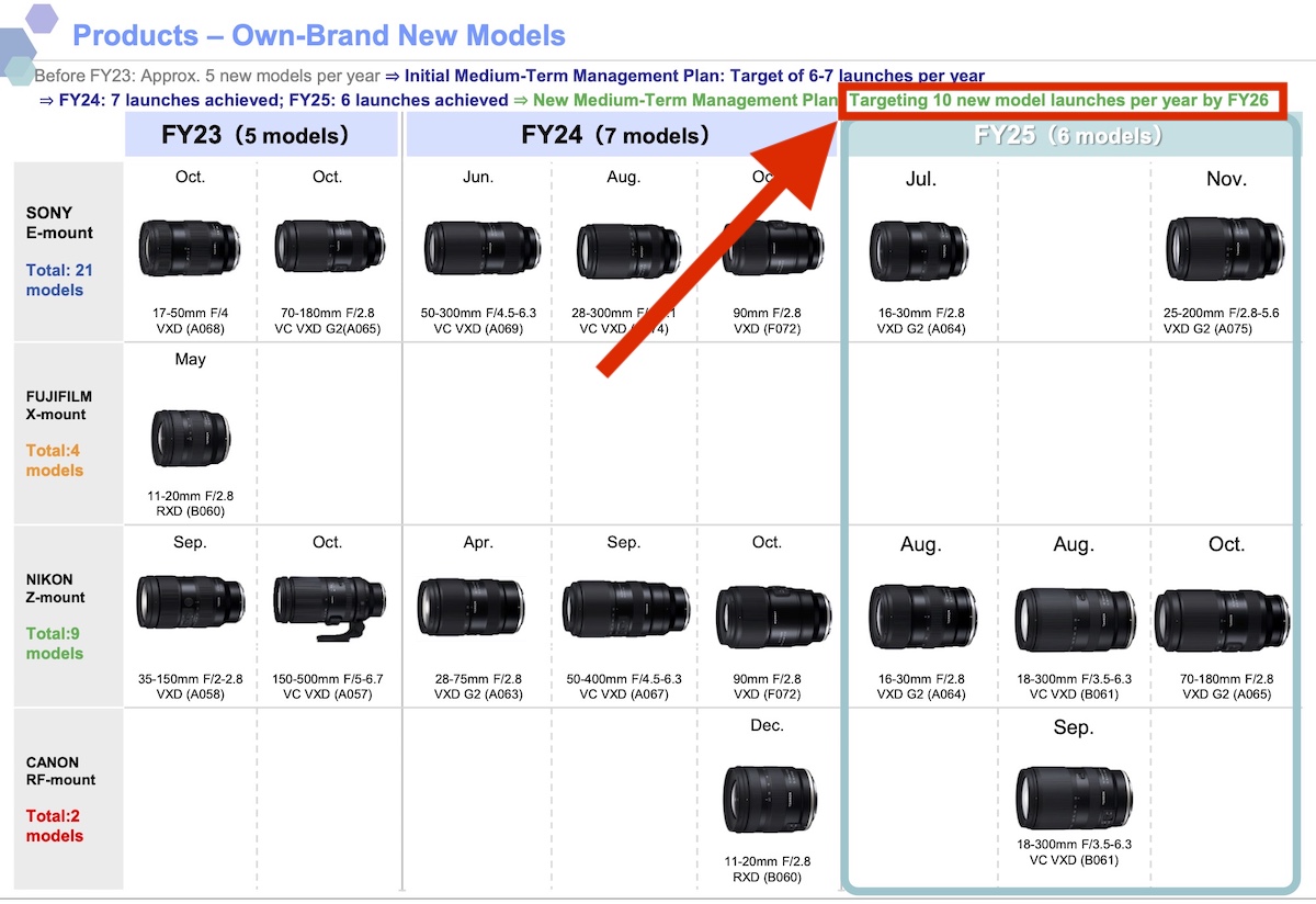 Tamron plans to announce a total of ten new lenses this financial year (2026), according to its latest financial statements: