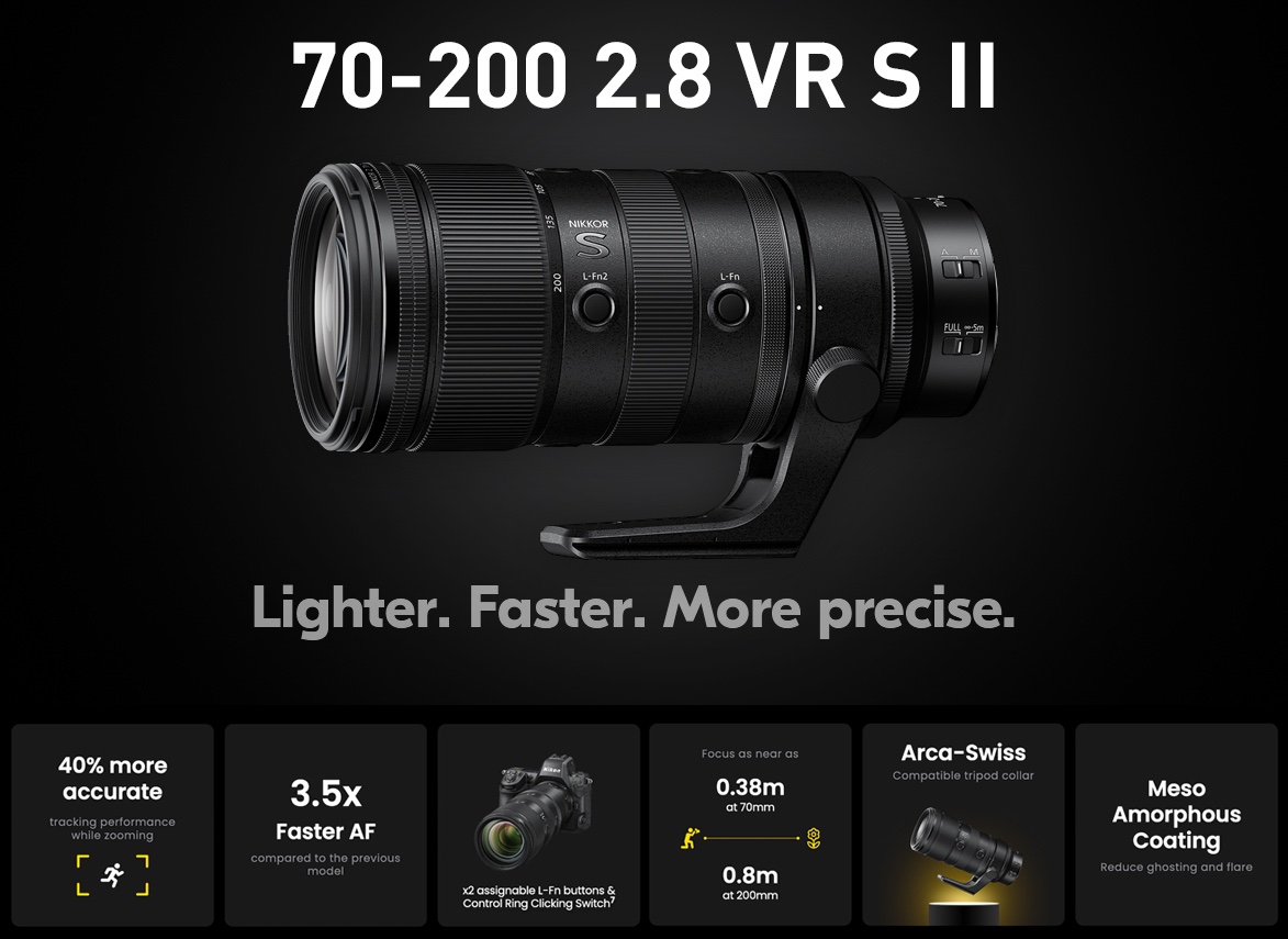 Here are the Nikon Nikkor Z 70-200mm f/2.8 VR S II lens official YouTube videos (pre-orders now open at B&H, Erhardt, WEX, and CCanada):