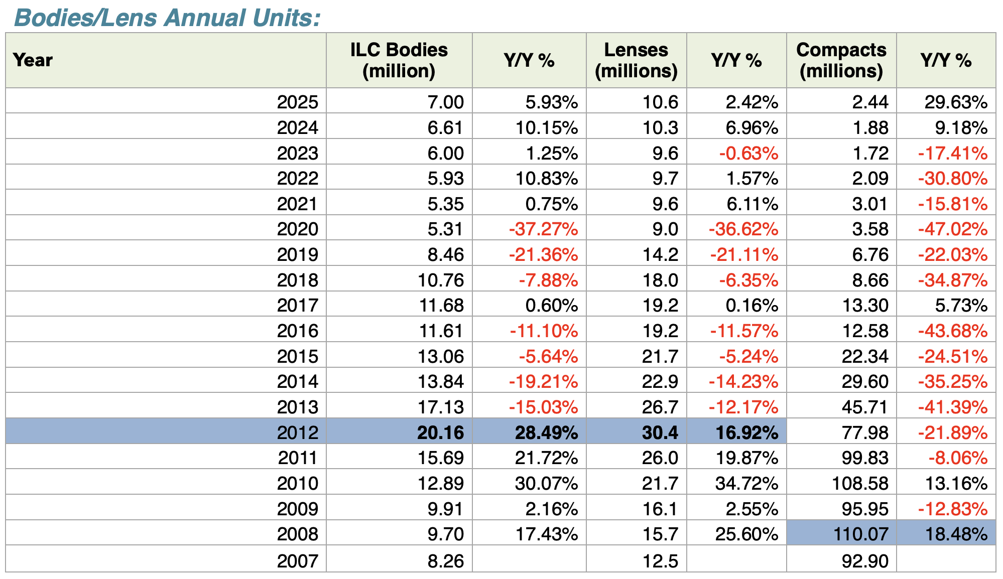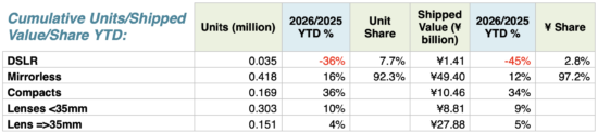 CIPA (Camera & Imaging Products Association in Japan) published their latest camera production data (orange: 2026, black: 2025, blue: 2024):