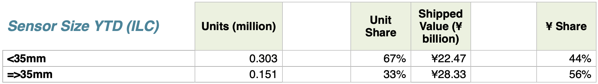 - Lenses for smaller than 35mm sensors were up 10% in units, and 9% in shipped value, and lenses for 35mm and larger sensors were up 4% in units and down 5% in shipped value.