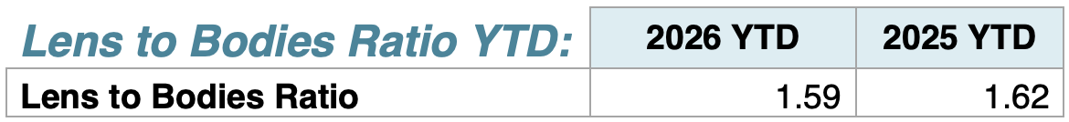- The lens-to-body sales ratio dropped to 1.59 compared to 1.62 a year ago.