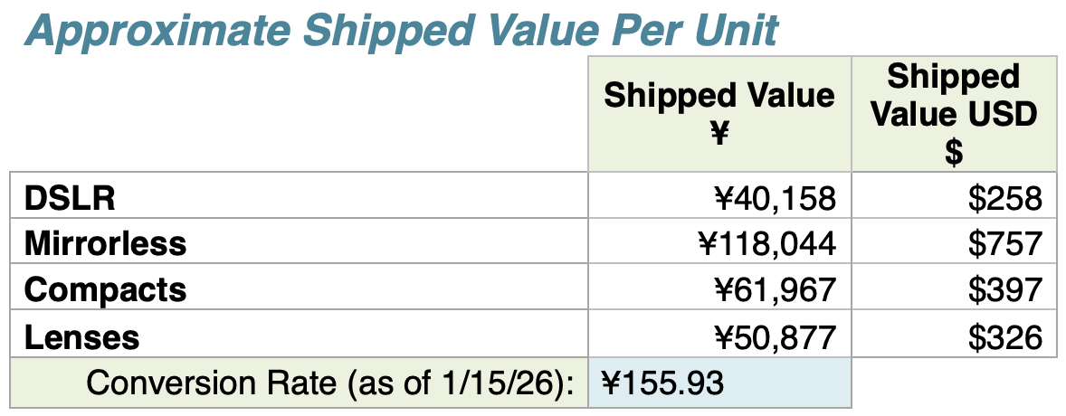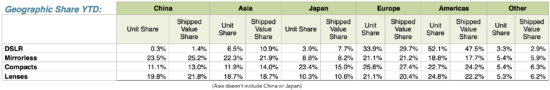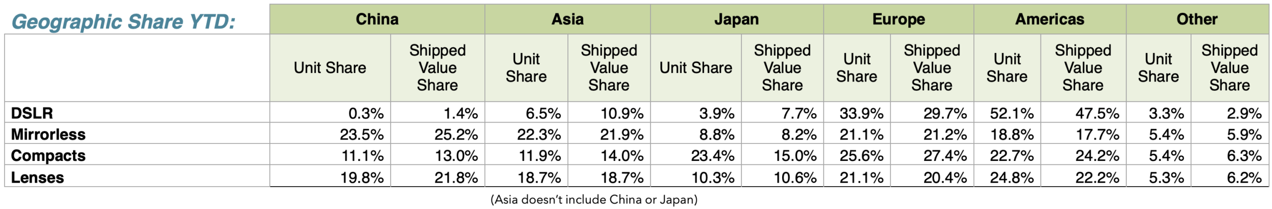 - Mirrorless units were up 16% in units and 12% in shipped value.