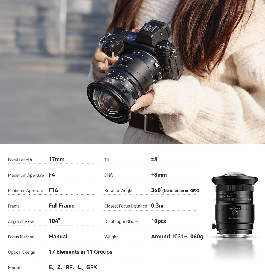 TTartisan announced a new 17mm f/4 tilt-shift lens for Nikon Z-mount.