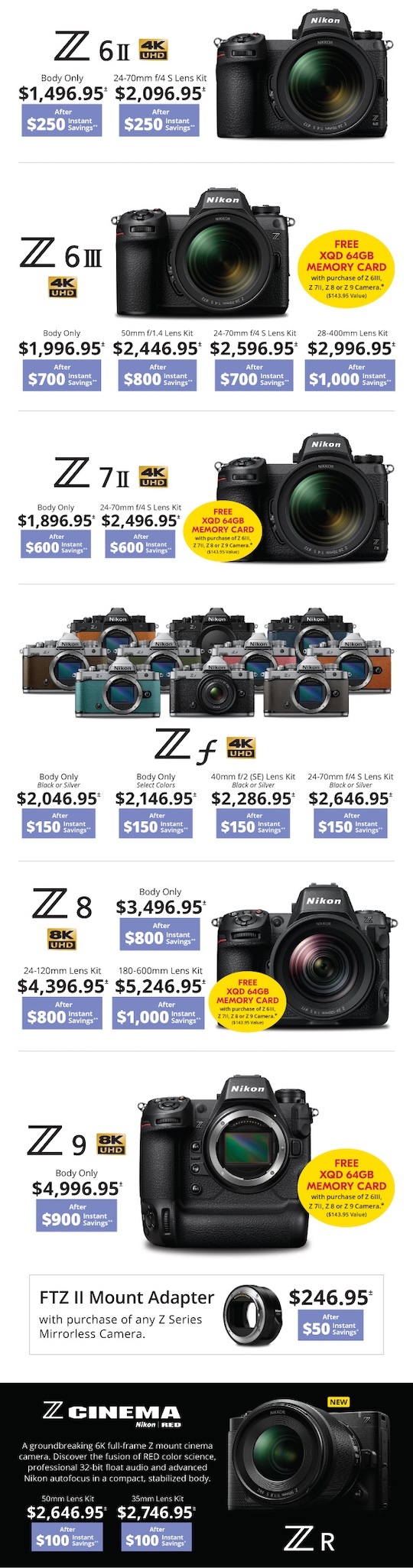 | Z8 w/24-120mm f/4 S | $5196.95 | $800 | $4396.95 |