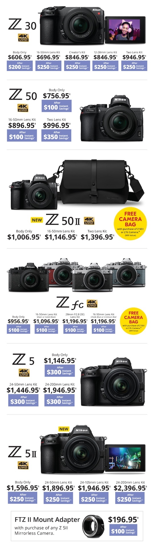 | Z5II w/24-200mm | $2646.95 | $250 | $2396.95 |