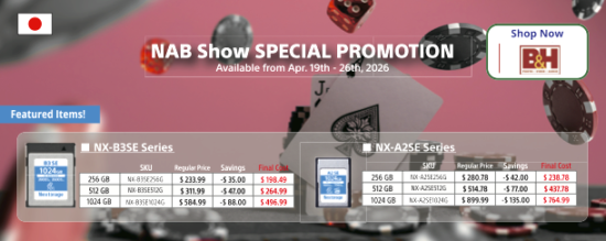 Our sponsor, Nextorage, announced today the launch of their special NAB deals at B&H Photo. The promotion includes significant discounts on CFexpress memory cards and card readers: