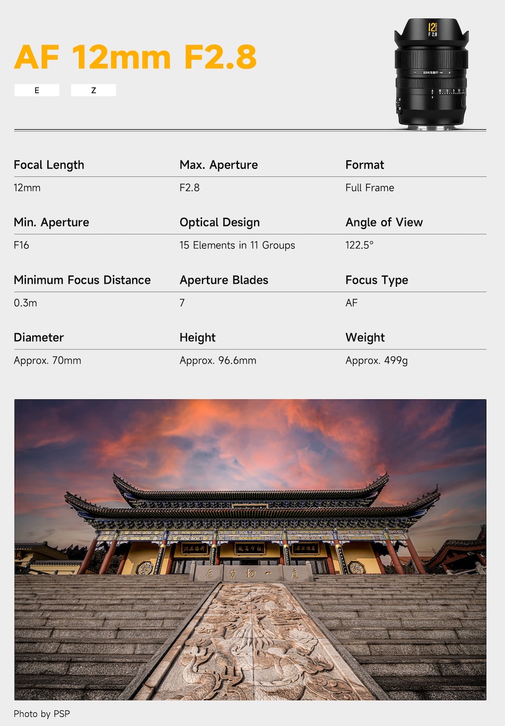 Brightin Star announced a new 12mm f/2.8 full-frame ultra-wide autofocus lens for Nikon Z-mount. Orders should be open on the official website soon (their lenses are sold also at B&H Photo). Brightin Star already has a manual focus 12mm f/2.8 lens: