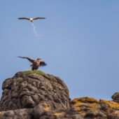 Description: Two Bridled Guillemots in the midst of a domestic dispute. The island of Hornøya is always a hectic mix of chaos and noise, squabbling seabirds vying for space and nesting sites. Sometimes you just want to bite your neighbours head off … literally !