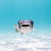 Description: A porcupine fish that has a mouthful of algae and seems to have trouble closing his mouth. So he has this eternal shocked look, and his dental hygiene is probably bothering me more than it’s bothering him!