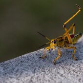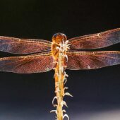 Description: Flame Skimmer Dragonfly lands on the stalk of an Aloe Vera plant and flashes a quick smile for the camera.