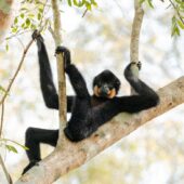 Description: This Yellow-cheeked Gibbon was just hanging out in the trees. Looks like he’s waiting for a beer to be served.