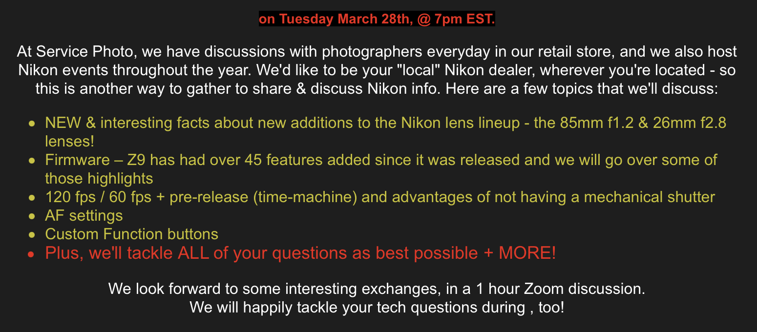 → Nikon PRO Roundtable: Secrets to Success with Nikon Z (free): April 4, 5pm.