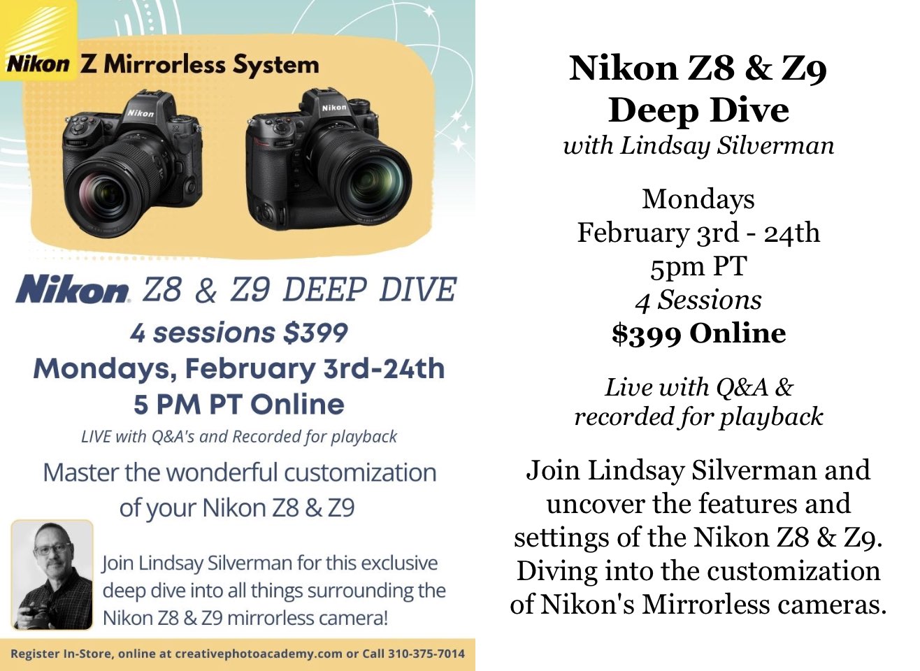 → Nikon Z8 & Z9 deep dive courses with Lindsay Silverman.